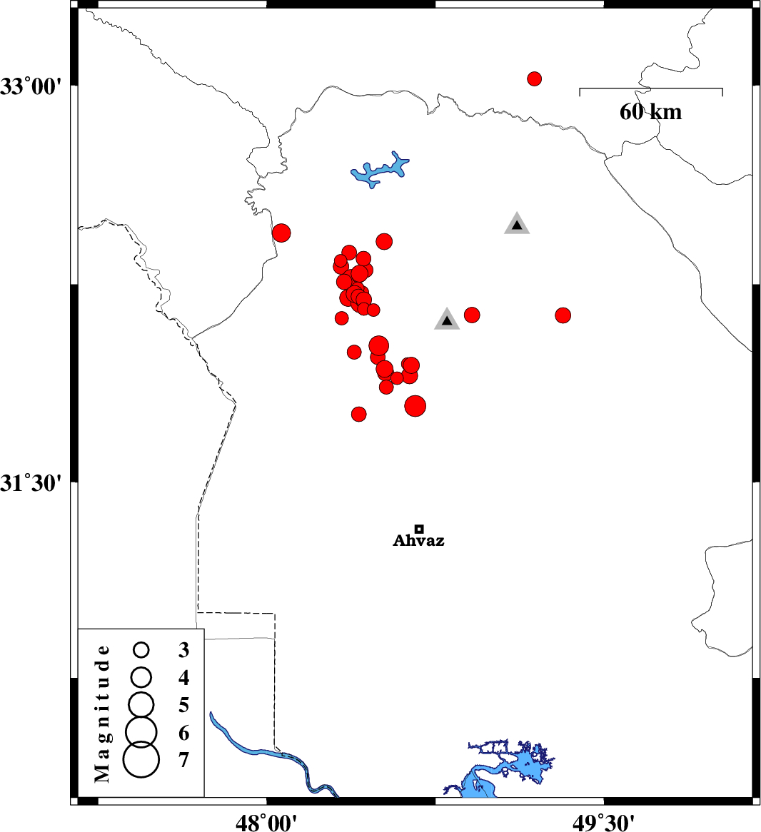 | 2018/04/27 | 04:28:45.9 | 08:58:45.9 | 31.975 | 48.494 | 14 | ML2.9 | Khoozestan Province, 35 km -West of Shushtar |