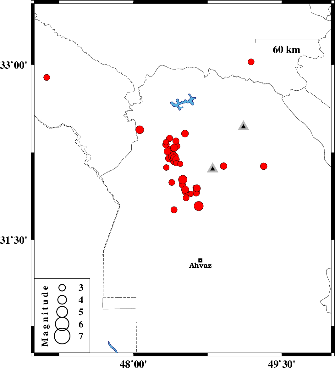 | 2018/04/27 | 04:28:45.9 | 08:58:45.9 | 31.975 | 48.494 | 14 | ML2.9 | Khoozestan Province, 35 km -West of Shushtar |
