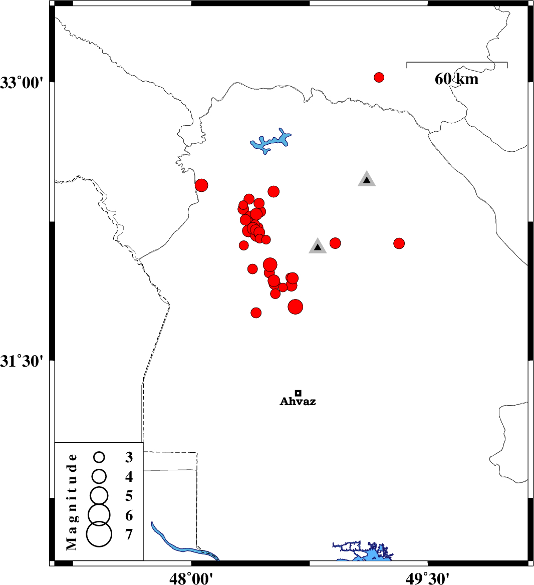 | 2018/05/21 | 05:44:57.1 | 10:14:57.1 | 32.275 | 48.374 | 15 | ML3.4 | Khoozestan Province, 12 km South of Dezful | ||