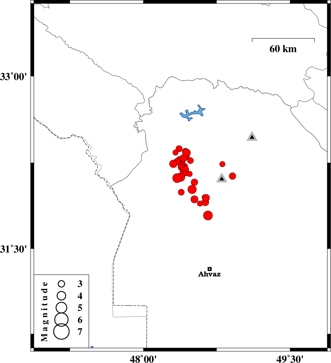 | 2018/05/23 | 04:07:58.8 | 08:37:58.8 | 32.291 | 48.412 | 18 | ML3.4 | Khoozestan Province, 10 km of Dezful | ||