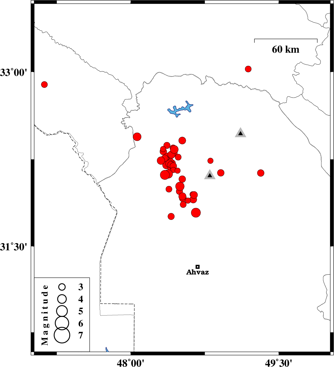 2018/05/27 02:51:44.5 07:21:44.5 32.0848.52215 ML3.1 Khoozestan Province, 31 km -West of Shushtar