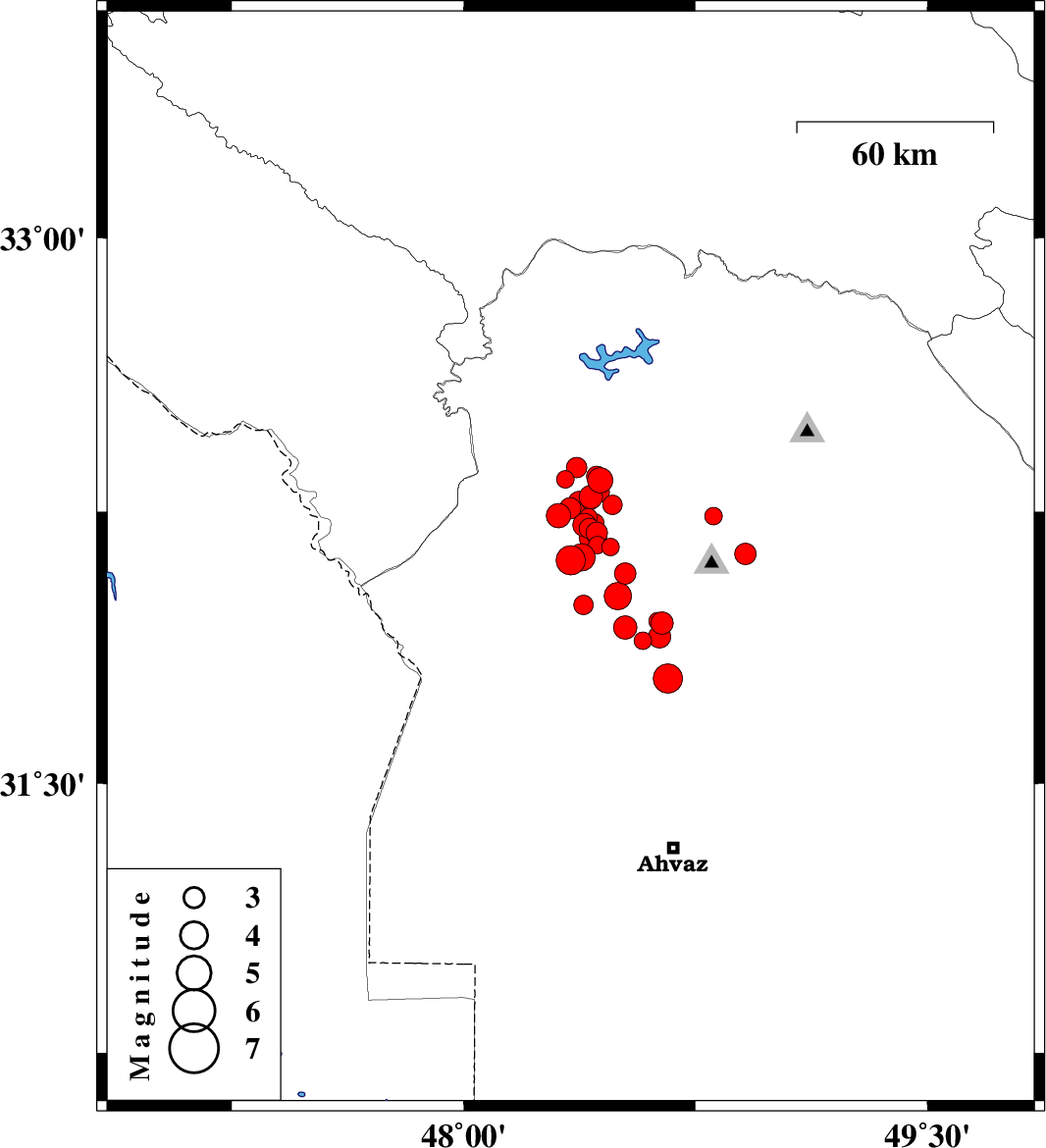 | 2018/05/23 | 04:07:58.8 | 08:37:58.8 | 32.291 | 48.412 | 18 | ML3.4 | Khoozestan Province, 10 km of Dezful | ||