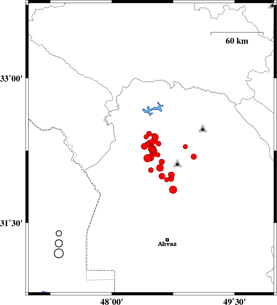 | 2018/05/26 | 14:15:01.3 | 18:45:01.3 | 31.79 | 48.66 | 15 | ML4.2 | Khoozestan Province, 33 km South-West of Shushtar | ||