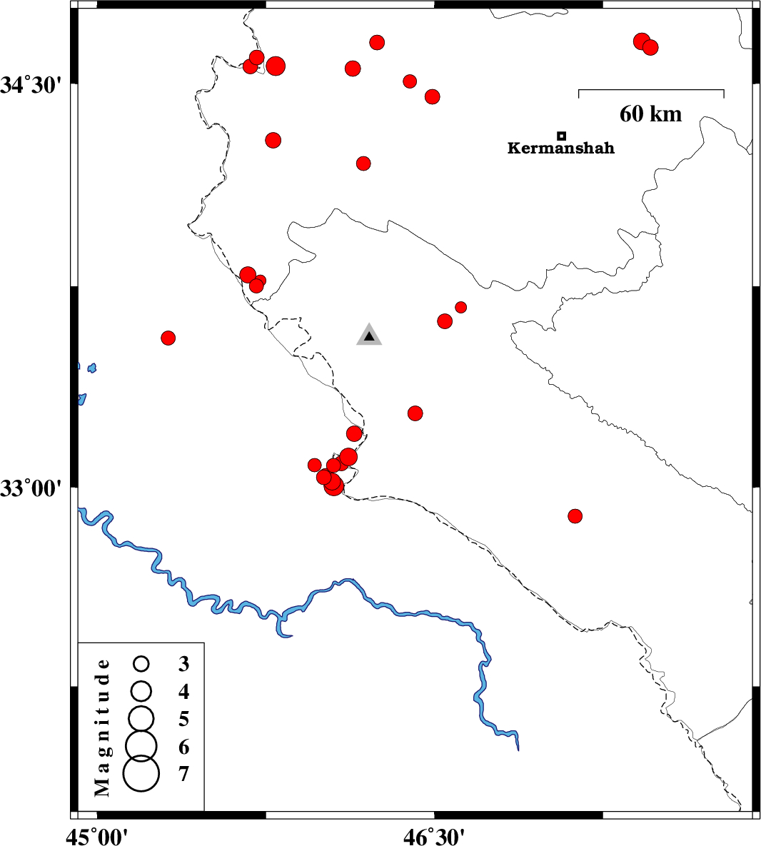 | 2018/05/25 | 14:52:27.3 | 19:22:27.3 | 33.792 | 45.67 | 14 | ML3.3 | Kermanshah Province, 45 km South-West of Gilan-E-Gharb | ||