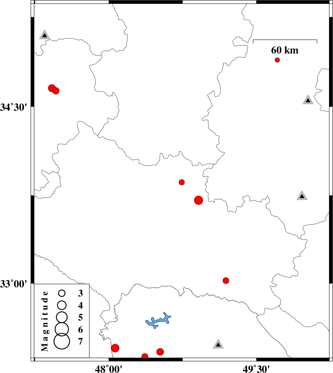 | 2018/05/07 | 14:18:25.9 | 18:48:25.9 | 33.709 | 48.913 | 15 | ML3.9 | Lorestan Province, 25 km South-East of Borujerd | ||