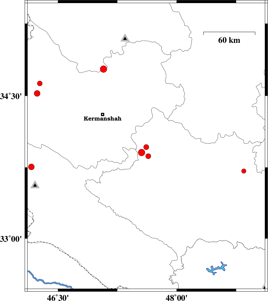 | 2017/11/13 | 11:32:33.9 | 15:02:33.9 | 33.964 | 47.615 | 18 | ML2.9 | Lorestan Province, 34 km South of Harsin | ||