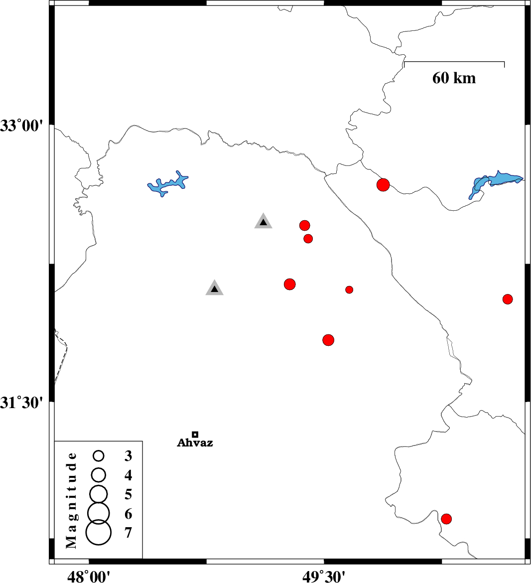 | 2017/10/25 | 09:06:05.9 | 12:36:05.9 | 32.385 | 49.398 | 14 | ML2.6 | Khoozestan Province, 27 km -East of Lali | ||