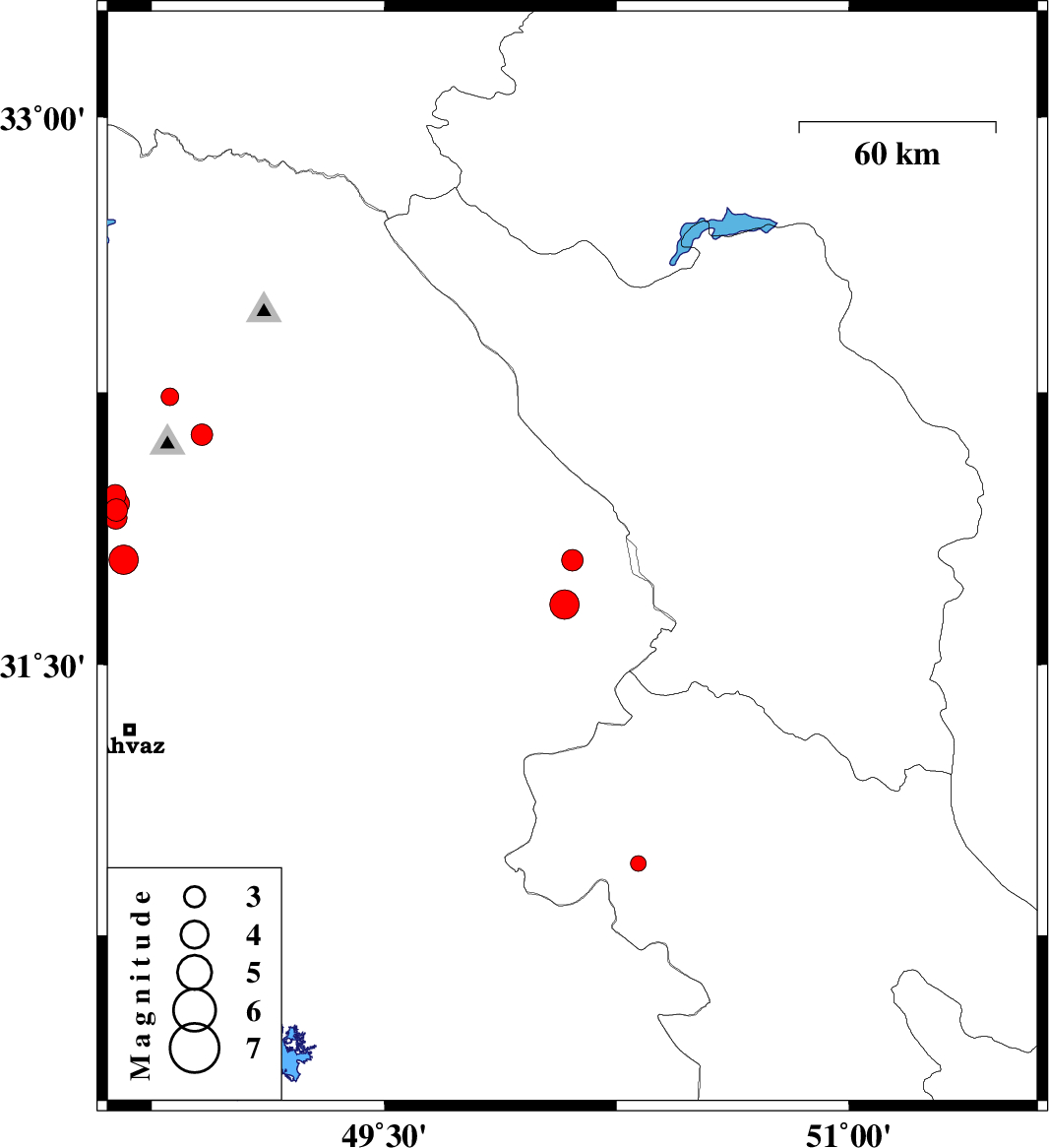 | 2018/05/30 | 09:13:10.3 | 13:43:10.3 | 31.789 | 50.107 | 15 | ML3.1 | Khoozestan Province, 23 km -East of Izeh | ||