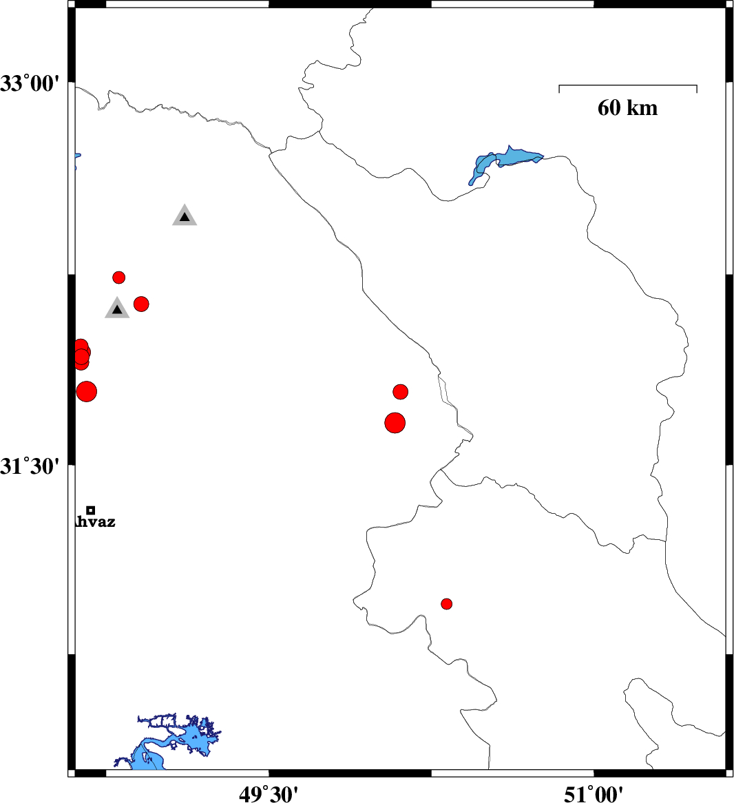 | 2018/05/26 | 14:42:27.5 | 19:12:27.5 | 31.944 | 48.642 | 14 | ML3.2 | Khoozestan Province, 23 km -West of Shushtar | ||
