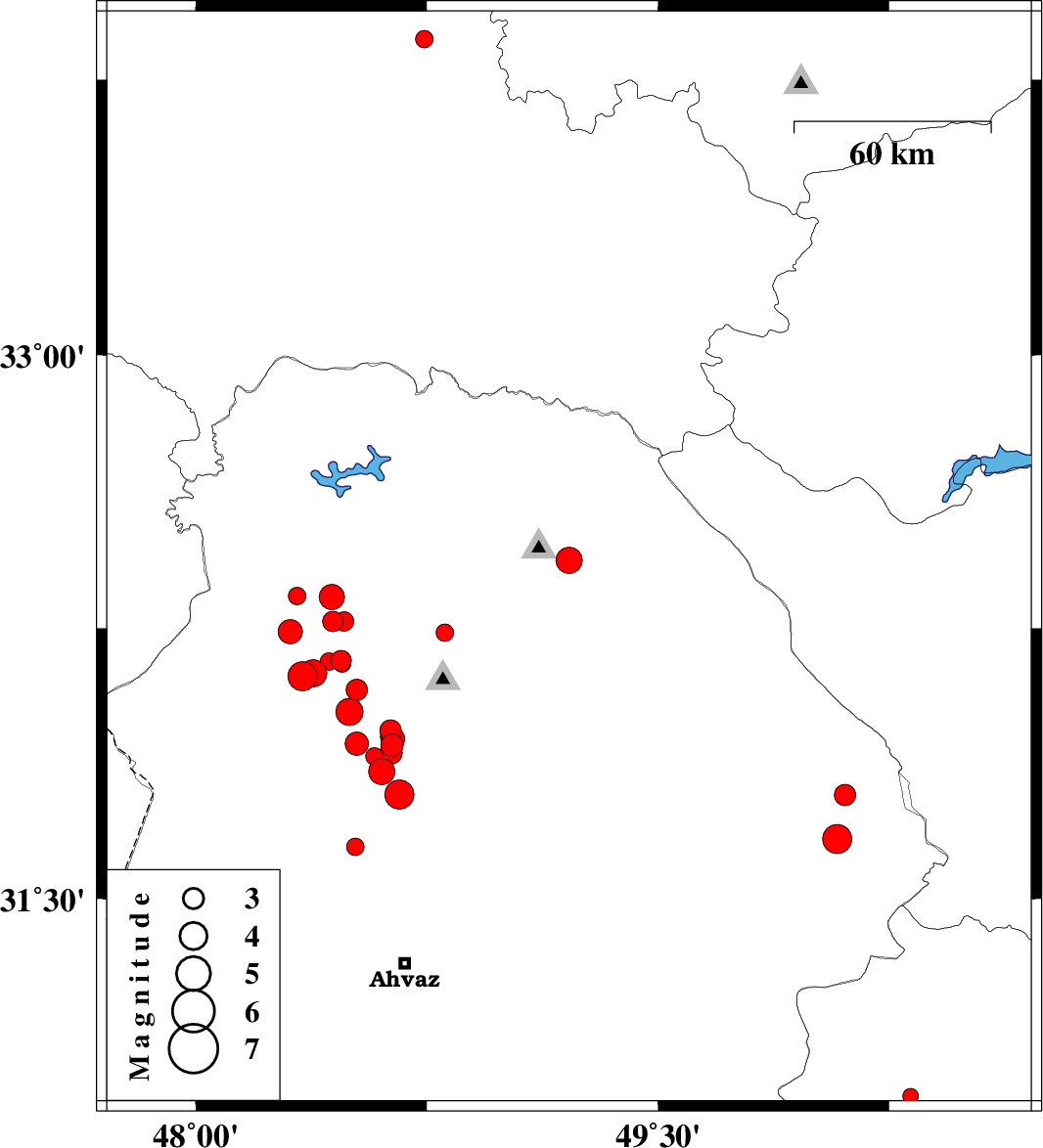 | 2018/05/28 | 01:41:51.4 | 06:11:51.4 | 32.269 | 48.445 | 15 | ML3 | Khoozestan Province, 13 km South of Dezful | ||
