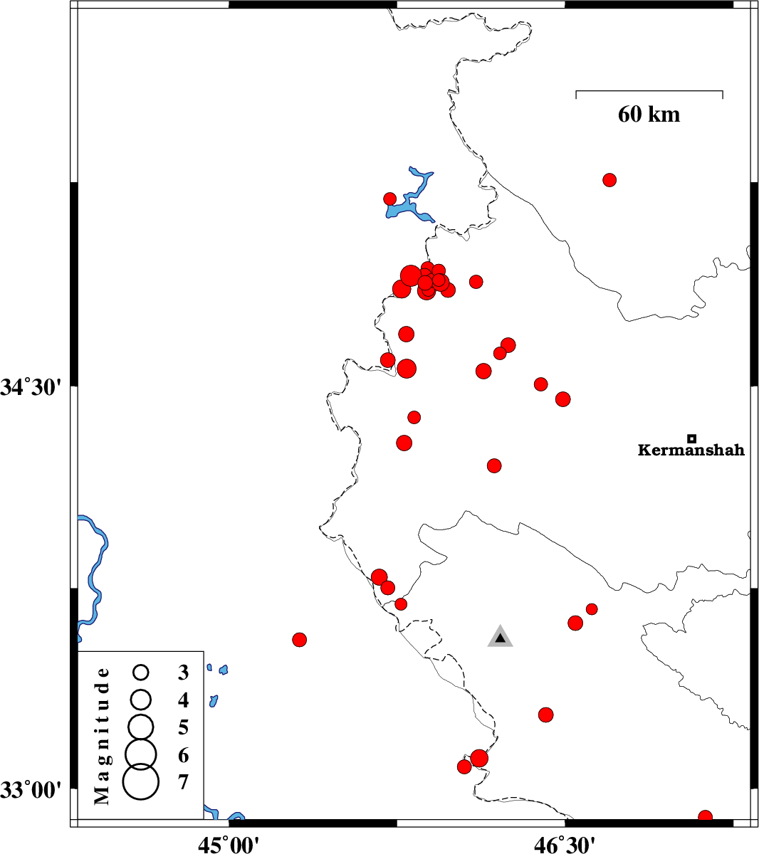 | 2018/05/09 | 16:34:05.2 | 21:04:05.2 | 34.907 | 45.872 | 15 | ML3 | Kermanshah Province, 16 km North of Tazehabad | ||