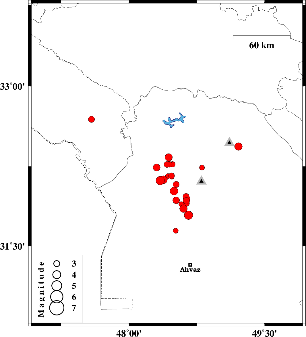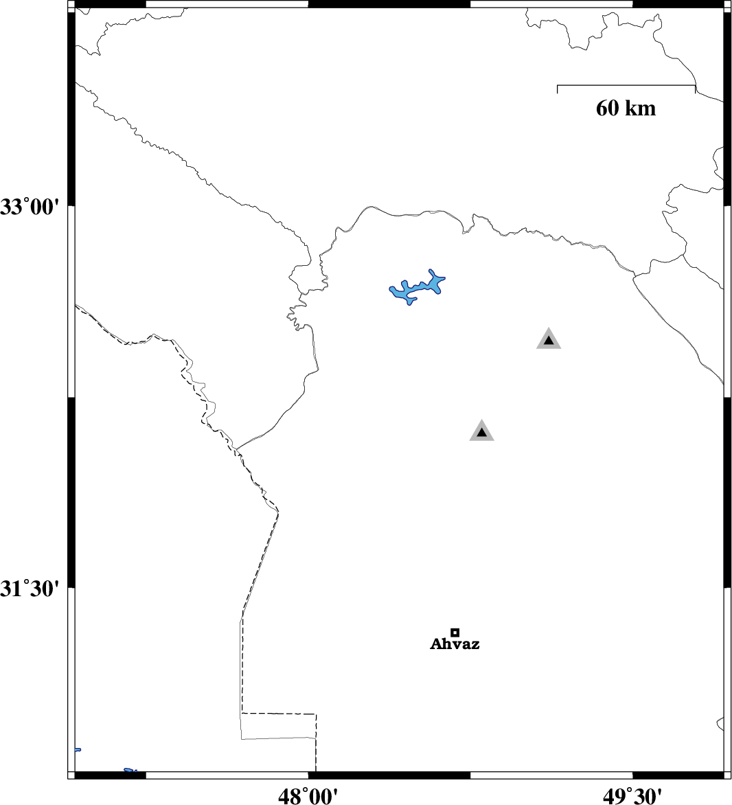 | 2018/05/29 | 04:39:03.1 | 09:09:03.1 | 31.853 | 48.603 | 15 | ML3.8 | Khoozestan Province, 32 km South-West of Shushtar | ||