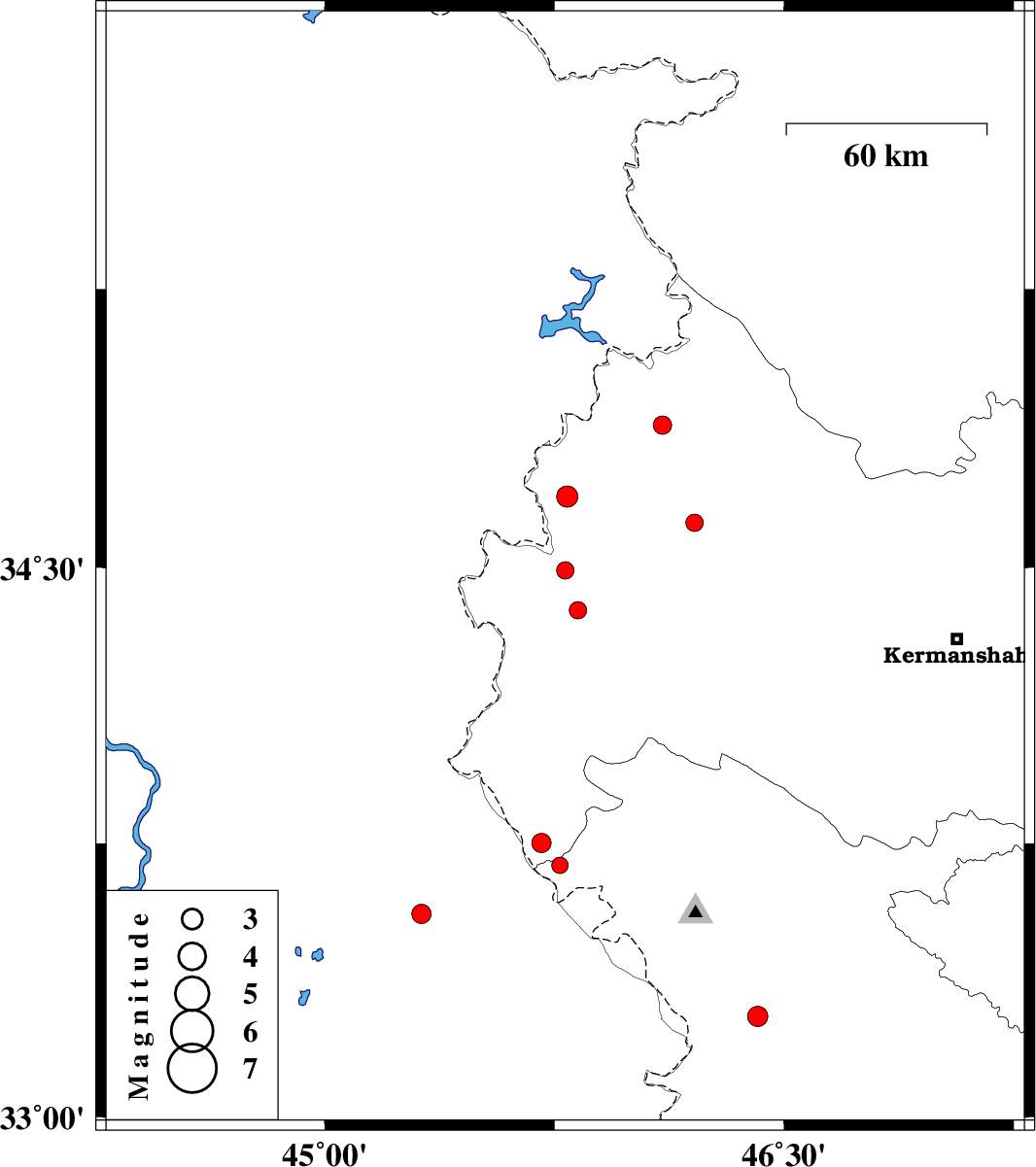 | 2018/05/26 | 04:50:52.7 | 09:20:52.7 | 33.751 | 45.708 | 14 | ML2.8 | Kermanshah Province, 48 km South-West of Gilan-E-Gharb |