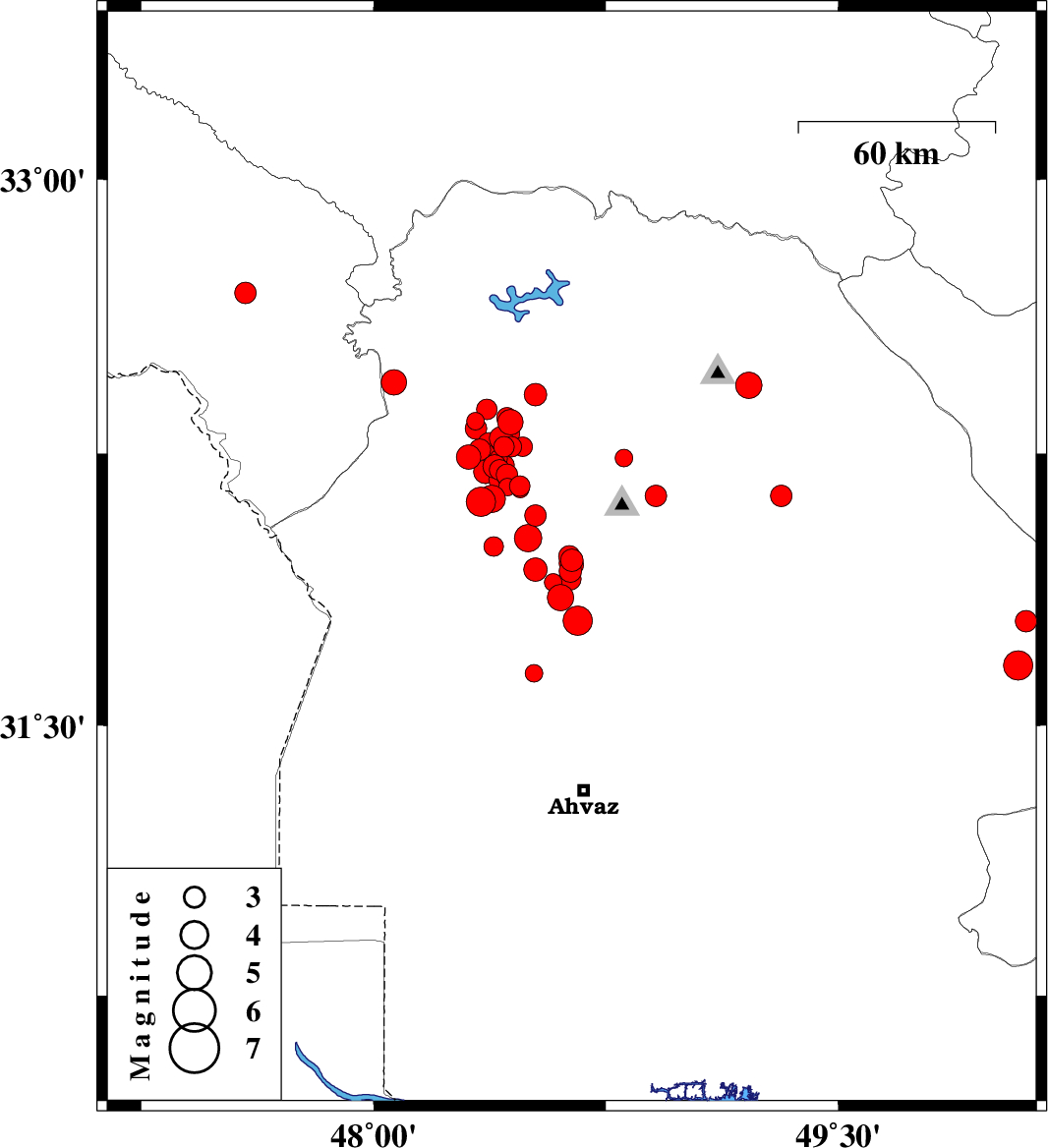 | 2018/05/28 | 01:41:51.4 | 06:11:51.4 | 32.269 | 48.445 | 15 | ML3 | Khoozestan Province, 13 km South of Dezful | ||