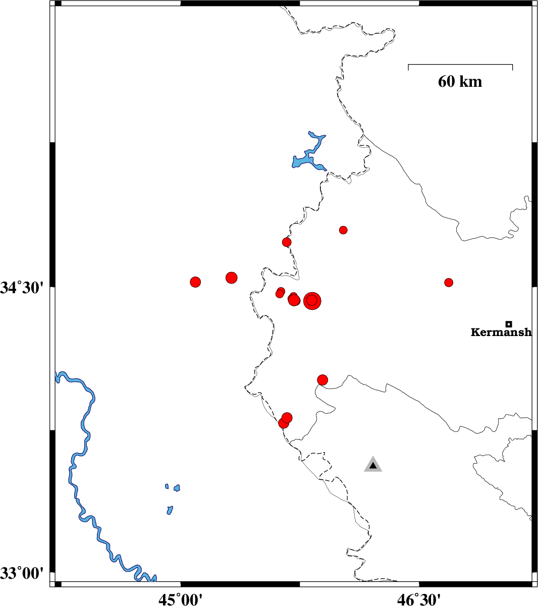 | 2018/03/29 | 05:23:21.0 | 09:53:21.0 | 34.014 | 45.892 | 15 | ML2.9 | Kermanshah Province, 15 km South of Gilan-E-Gharb | ||