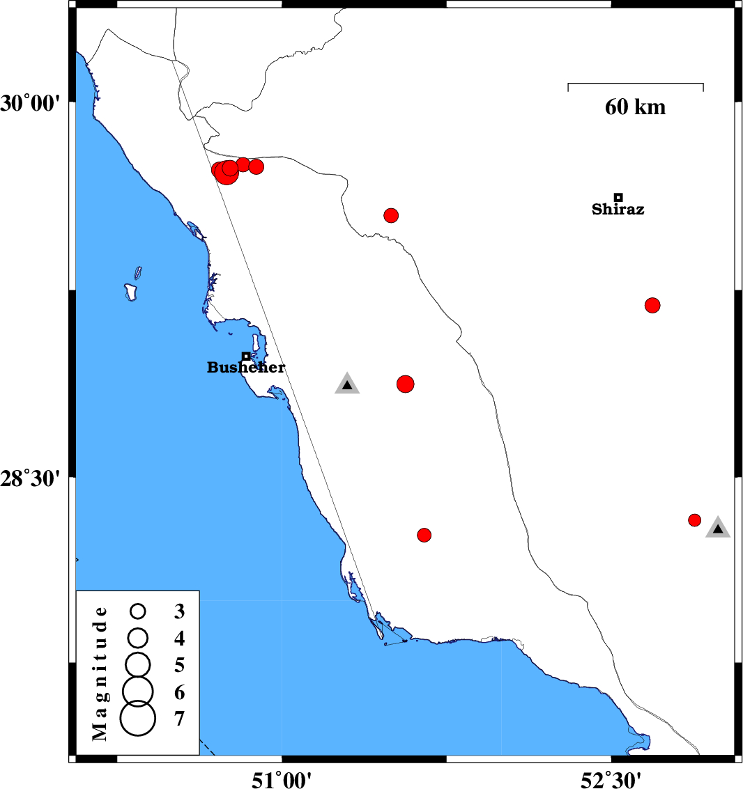 | 2018/03/19 | 06:09:52.0 | 09:39:52.0 | 29.736 | 50.764 | 6 | ML3.2 | Bushehr Province, 30 km North-East of Bandar-e genaveh | ||