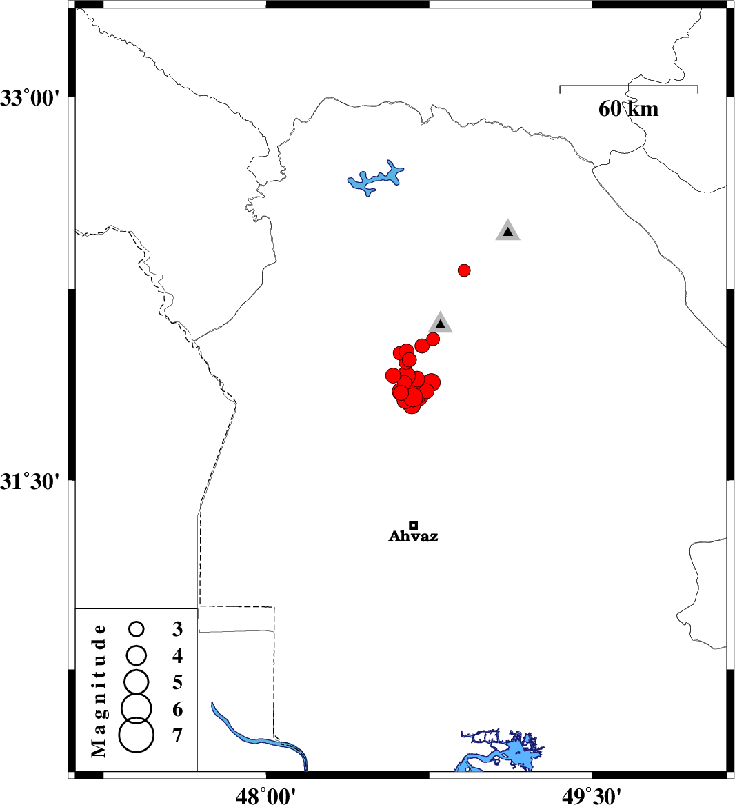 | 2018/03/31 | 07:26:45.3 | 11:56:45.3 | 31.92 | 48.641 | 16 | ML3 | Khoozestan Province, 24 km South-West of Shushtar | ||