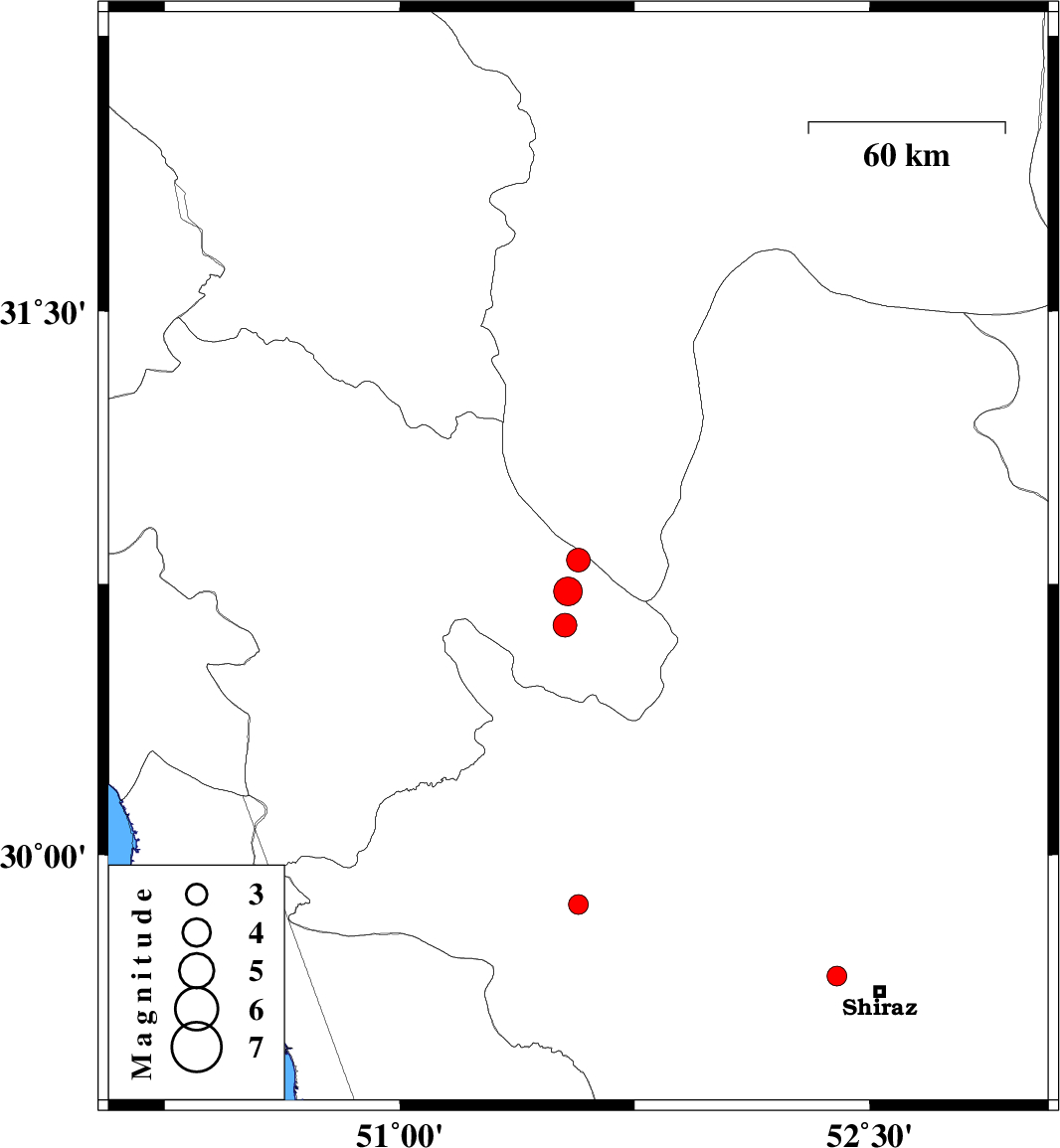 | 2018/05/31 | 21:08:28.9 | 01:38:28.9 | 29.861 | 51.57 | 14 | ML2.8 | Fars Province, 28 km South of Nurabad |