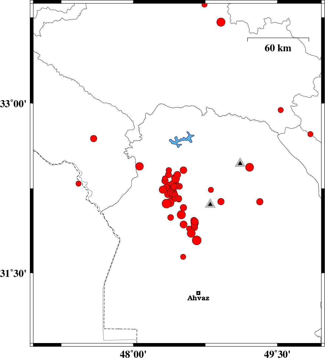 | 2018/05/28 | 01:41:51.4 | 06:11:51.4 | 32.269 | 48.445 | 15 | ML3 | Khoozestan Province, 13 km South of Dezful | ||