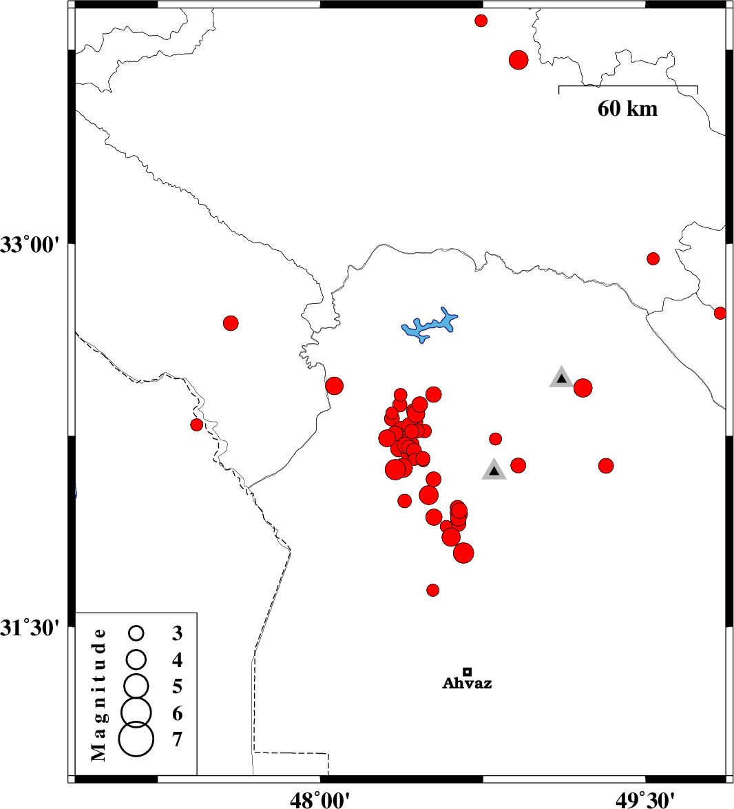 | 2018/05/28 | 01:41:51.4 | 06:11:51.4 | 32.269 | 48.445 | 15 | ML3 | Khoozestan Province, 13 km South of Dezful | ||