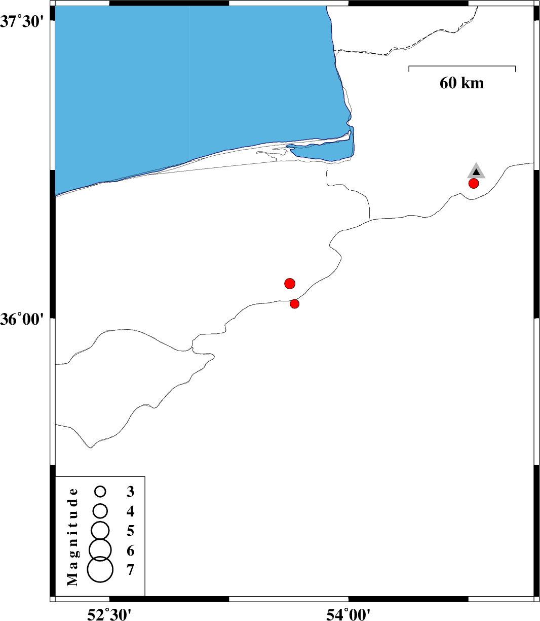 | 2018/06/06 | 08:41:33.7 | 13:11:33.7 | 36.682 | 54.783 | 14 | ML2.8 | Golestan Province, 26 km South of Ali Abad |