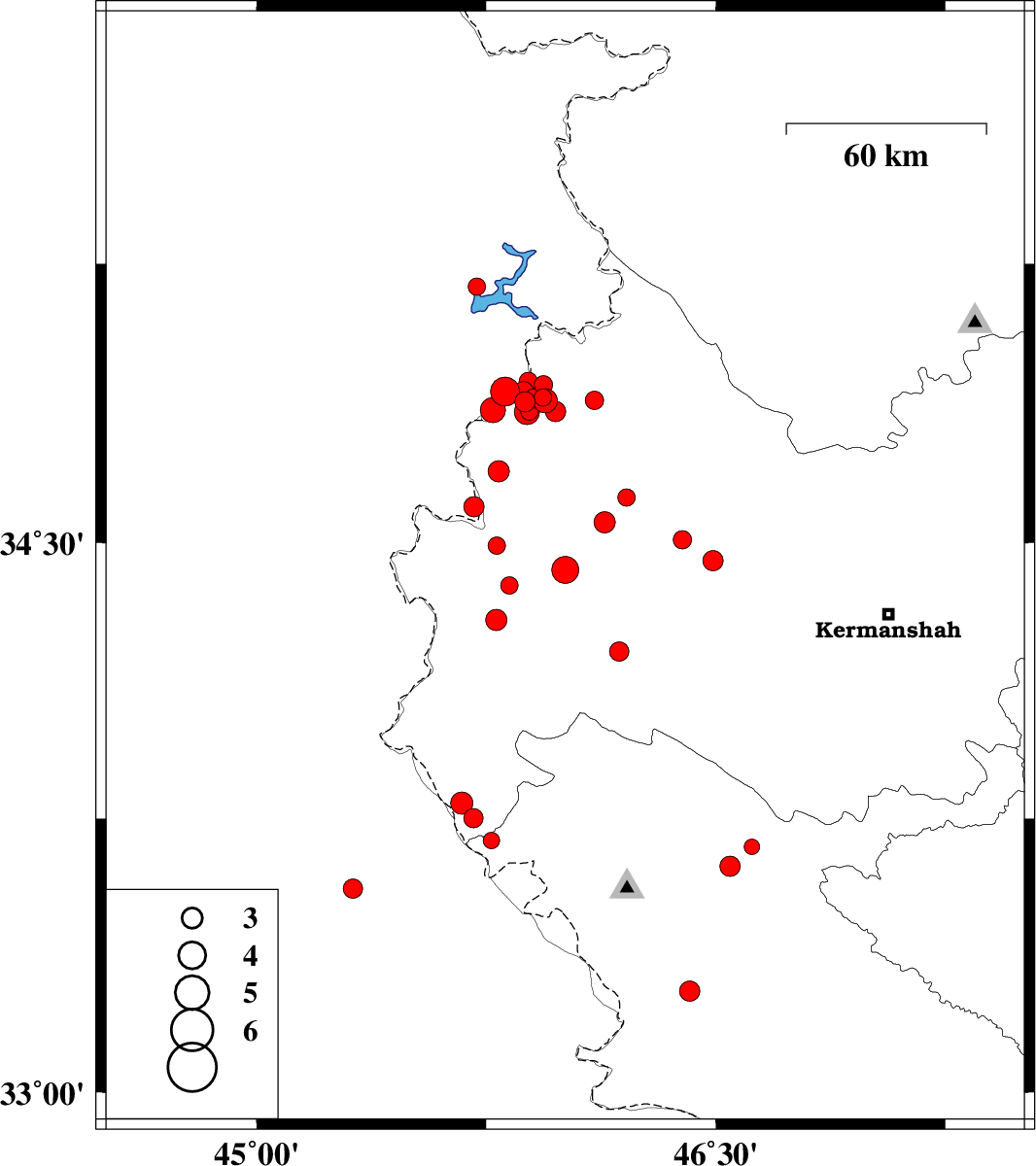 2018/06/06 | 00:07:07.5 | 04:37:07.5 | 34.426 | 46.008 | 15 | ML:3.9 | Kermanshah Province, 12 km -East of Sar-e pol-e zahab | ||