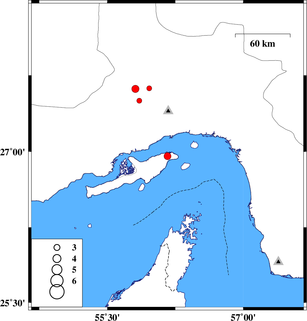 | 2018/06/03 | 03:14:18.2 | 07:44:18.2 | 27.501 | 55.853 | 18 | ML2.5 | Hormozgan Province, 55 km North-West of Bandar-e abbas | ||