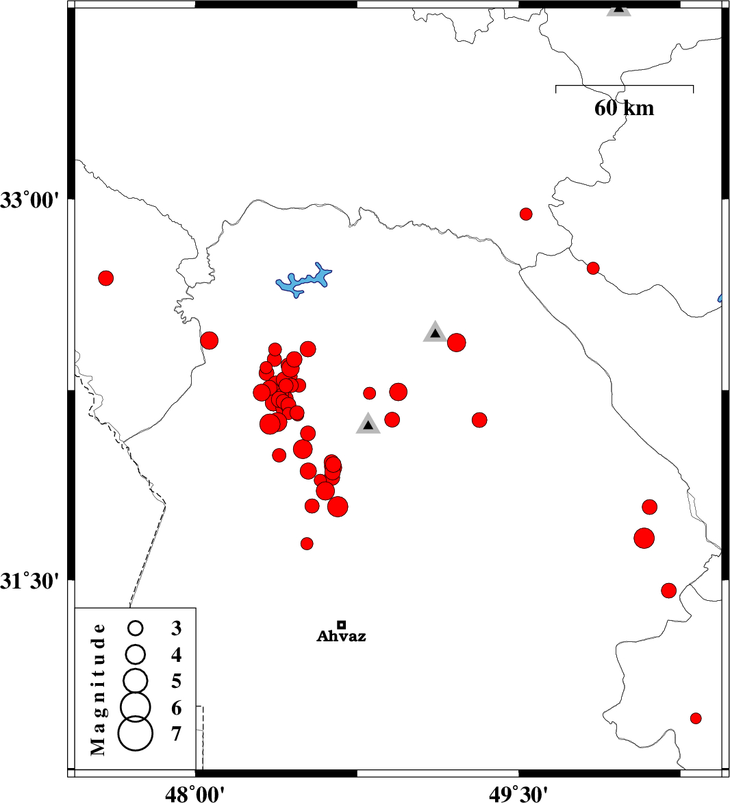 | 2018/05/28 | 01:41:51.4 | 06:11:51.4 | 32.269 | 48.445 | 15 | ML3 | Khoozestan Province, 13 km South of Dezful | ||