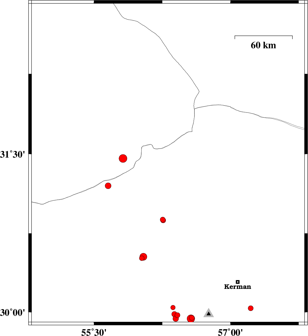 | 2018/05/17 | 10:18:29.6 | 14:48:29.6 | 30.796 | 57.367 | 15 | ML2.9 | Kerman Province, 63 km North-East of Kerman | ||