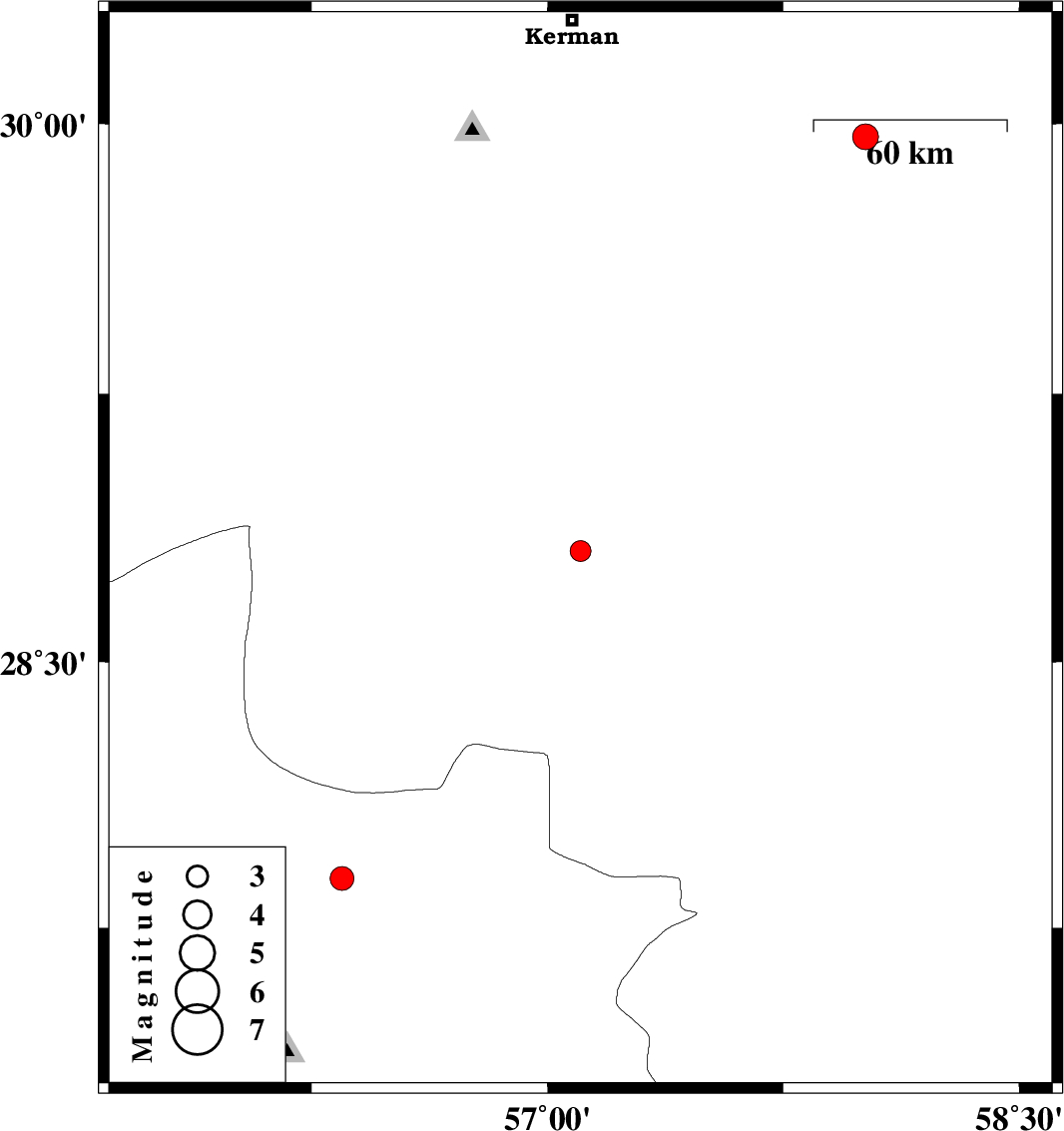 | 2018/06/11 | 03:40:24.0 | 08:10:24.0 | 29.965 | 58.012 | 15 | ML3.6 | Kerman Province, 101 km North-West of Bam |