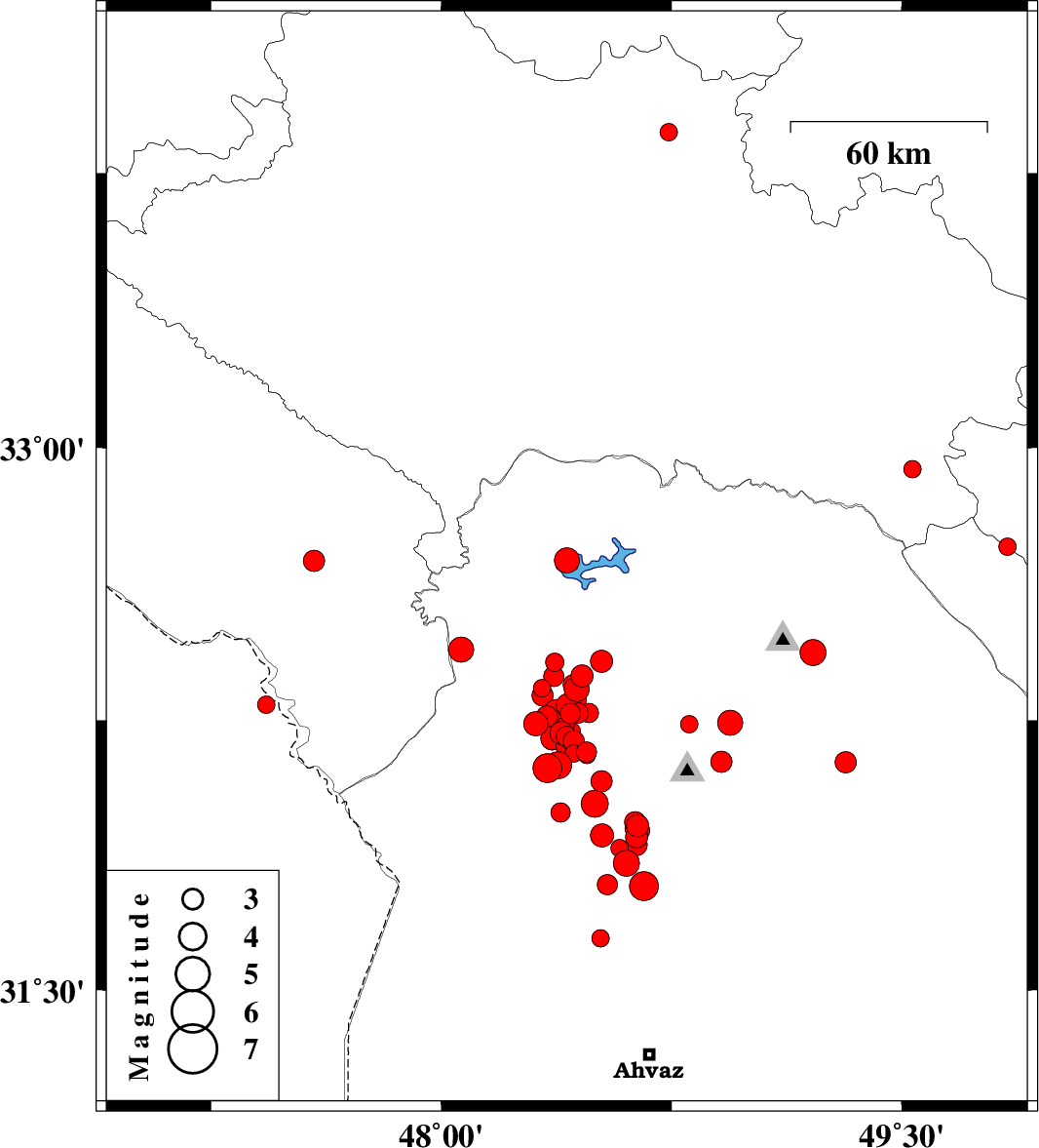 | 2018/05/28 | 01:41:51.4 | 06:11:51.4 | 32.269 | 48.445 | 15 | ML3 | Khoozestan Province, 13 km South of Dezful | ||