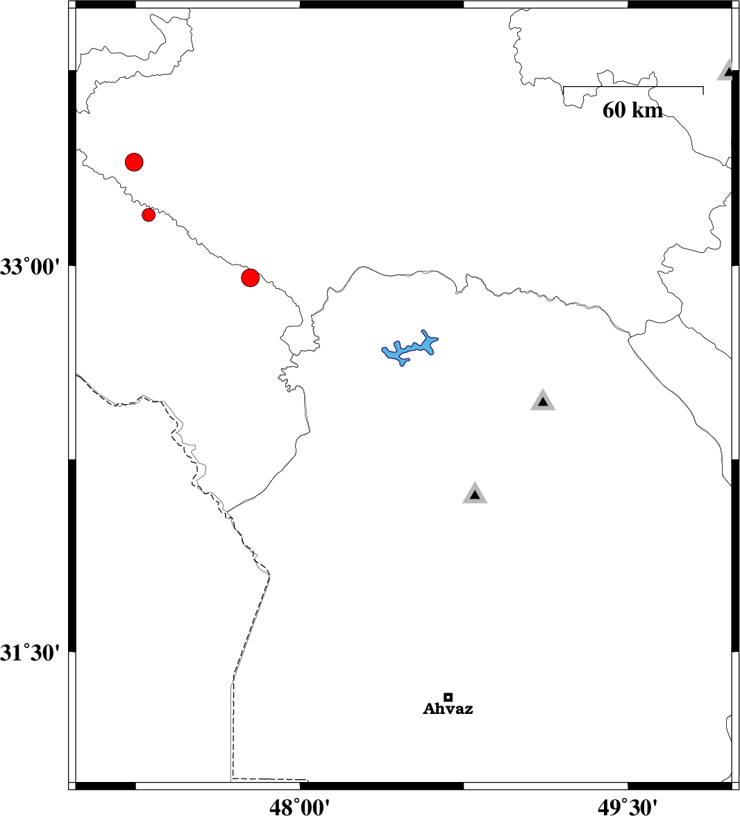 | 2018/06/16 | 08:17:15.4 | 12:47:15.4 | 32.487 | 48.475 | 15 | ML2.7 | Khoozestan Province, 12 km -East of Andimeshk | ||