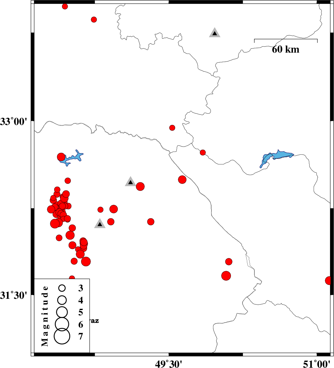 | 2018/06/06 | 02:08:55.6 | 06:38:55.6 | 32.729 | 49.844 | 6 | ML2.6 | Esfahan Province, 34 km South-West of Fereydunshahr | ||