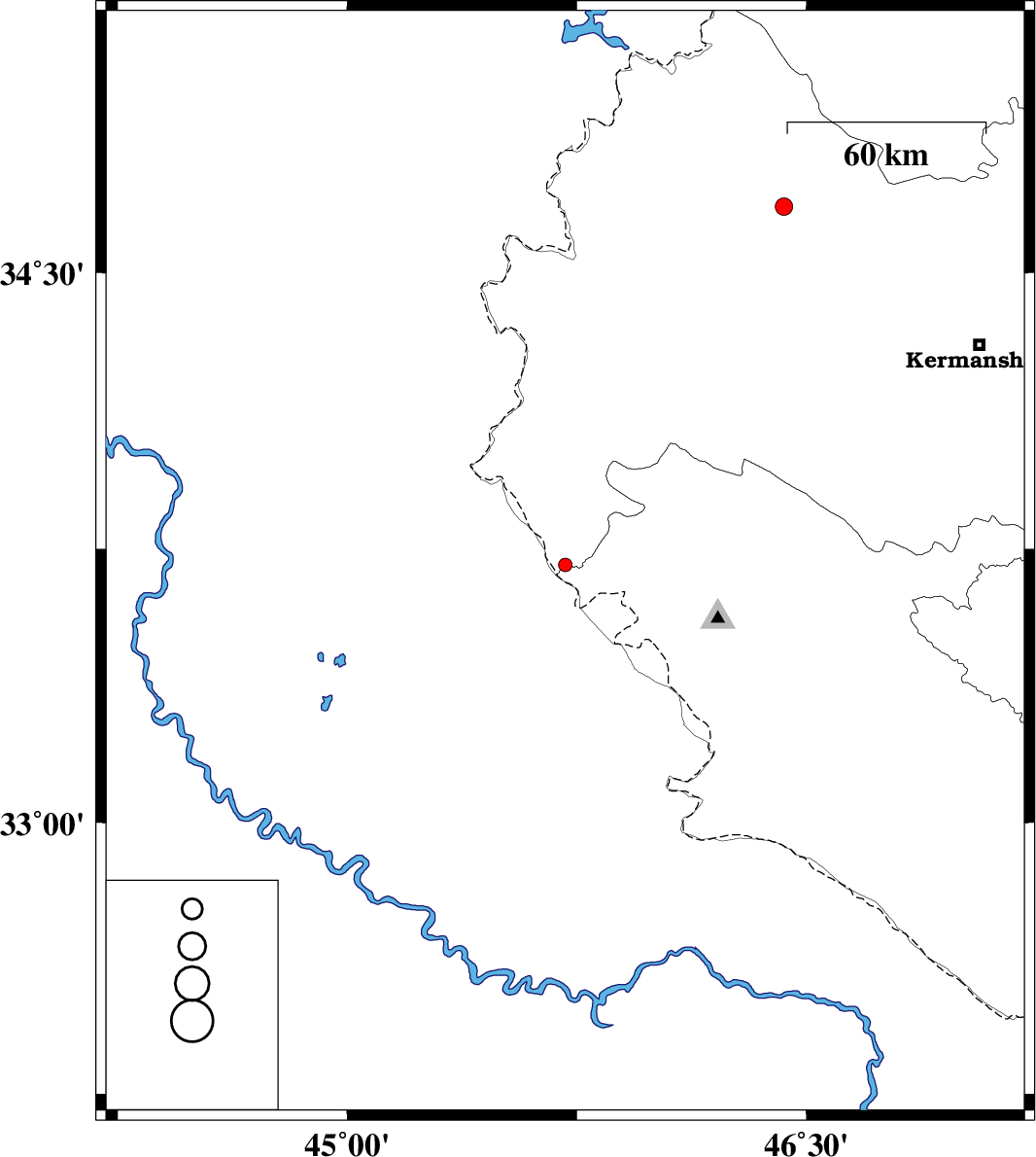 2018/06/14 | 00:06:36.5 | 04:36:36.5 | 33.706 | 45.712 | 14 | ML:2 | Kermanshah Province, 52 km South-West of Gilan-E-Gharb | ||