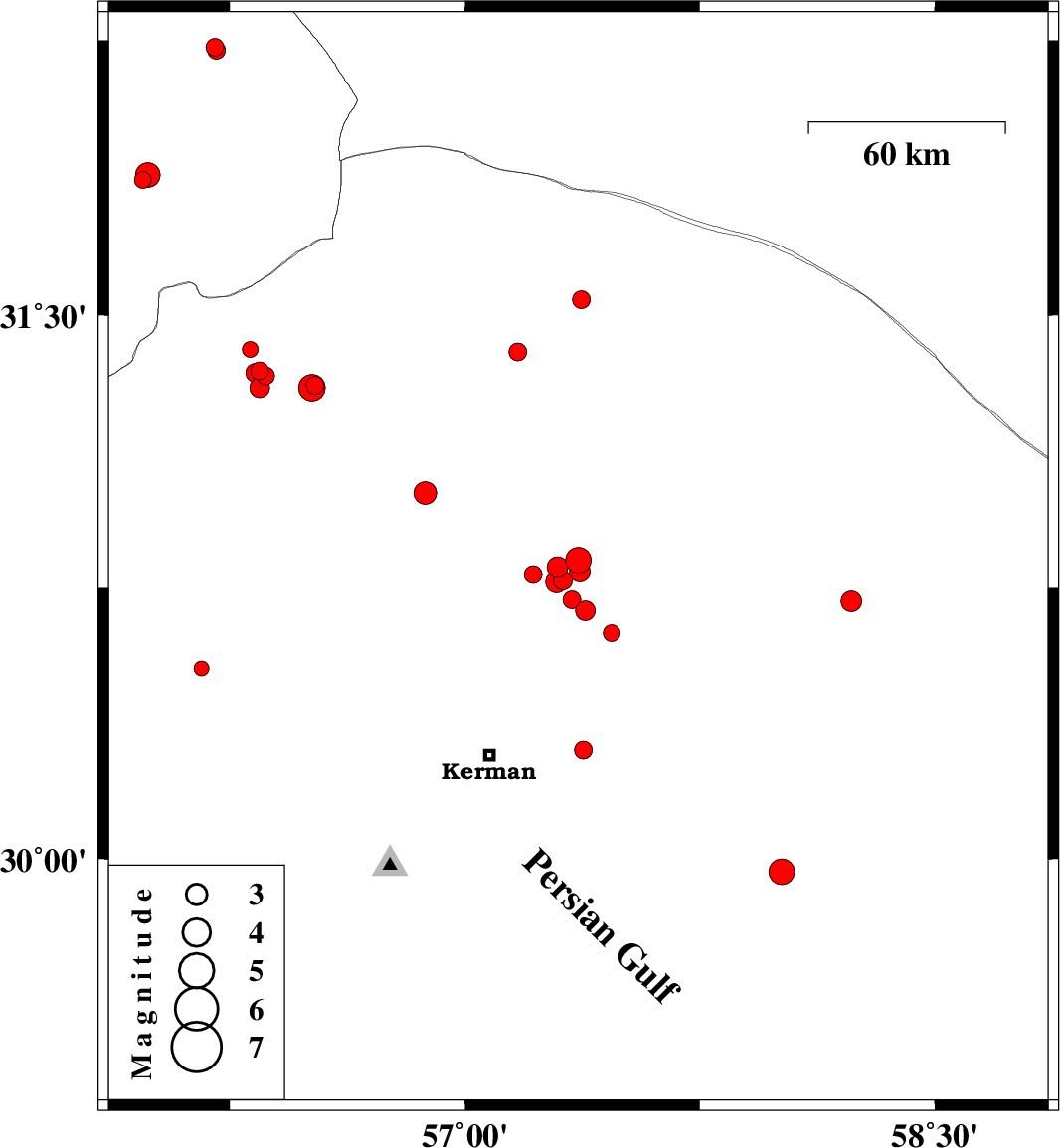 2018/05/16 19:35:38.5 00:05:38.5 30.76757.29314 ML3.1 Kerman Province, 57 km North-East of Kerman