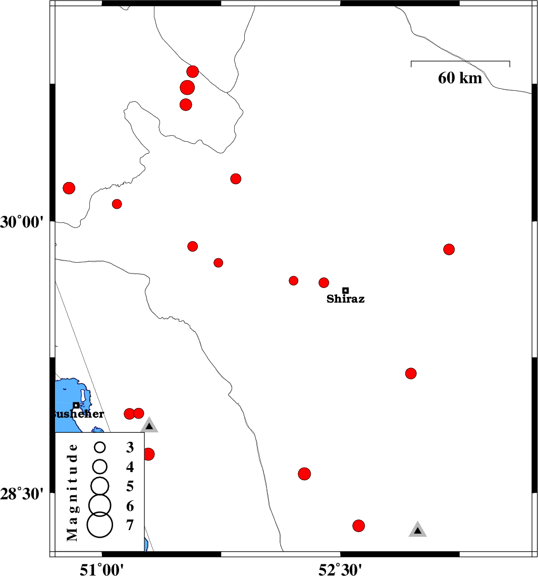 | 2018/06/19 | 05:21:43.6 | 09:51:43.6 | 29.673 | 52.205 | 14 | ML2.5 | Fars Province, 32 km -West of Shiraz | ||