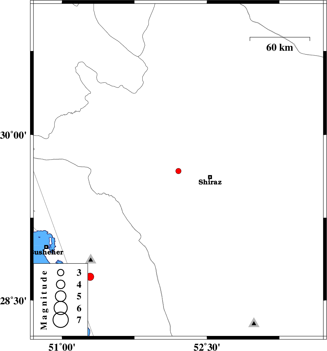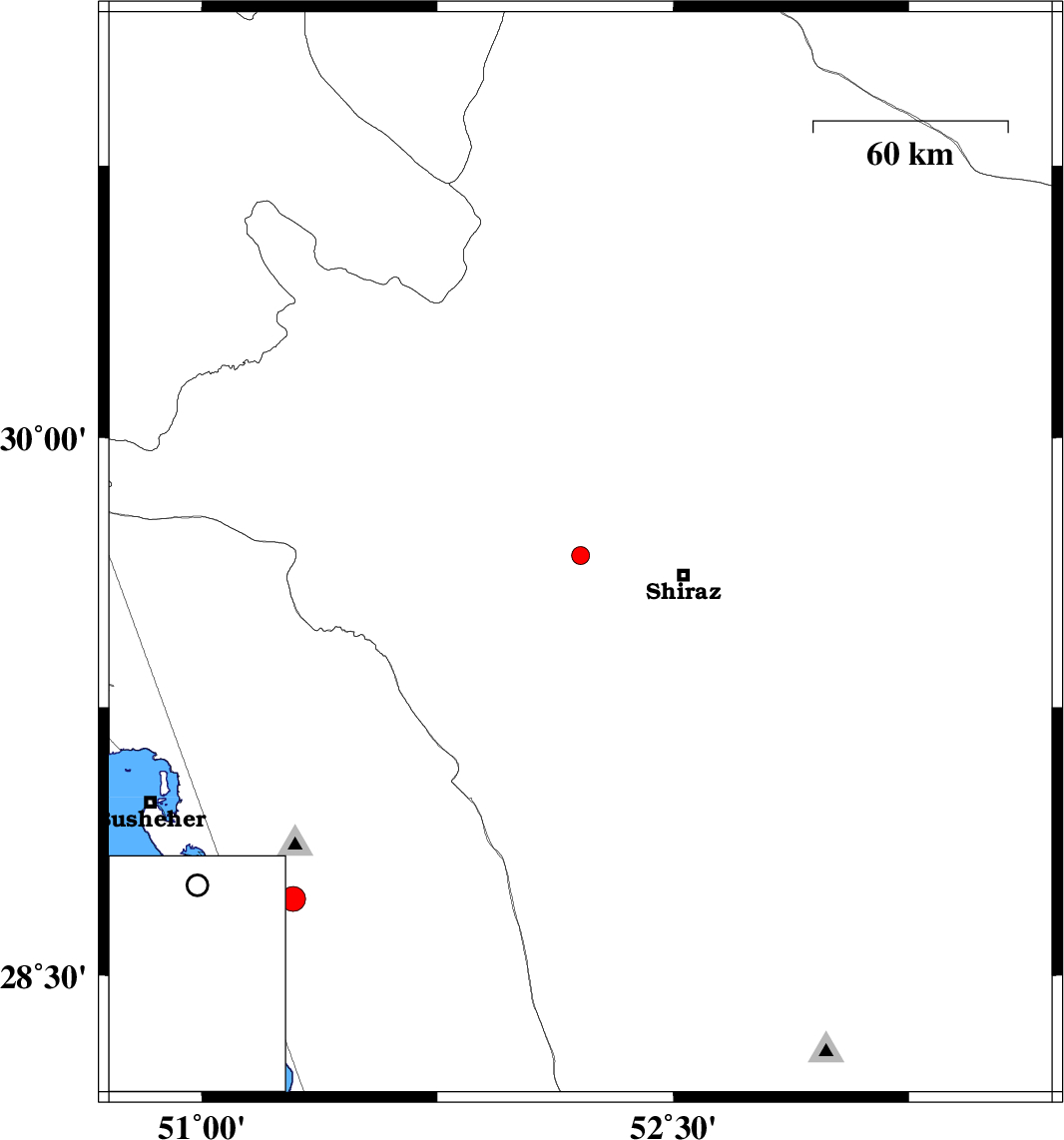 | 2018/06/19 | 05:21:43.6 | 09:51:43.6 | 29.673 | 52.205 | 14 | ML2.5 | Fars Province, 32 km -West of Shiraz | ||