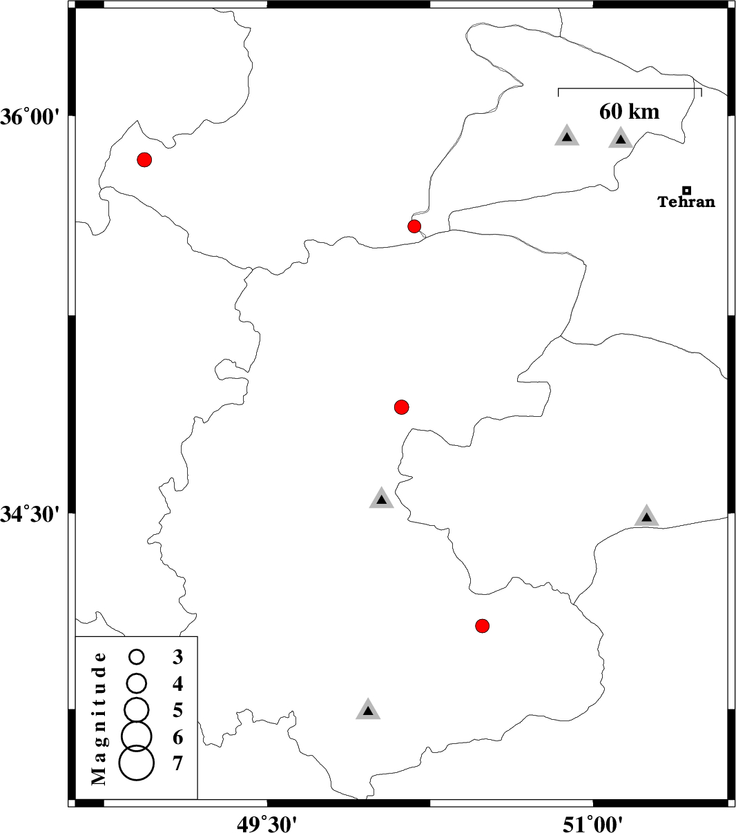 2018/06/16 | 20:30:43.3 | 01:00:43.3 | 34.069 | 50.489 | 7 | ML:2.8 | Markazi Province, 17 km North of Mahallat | ||