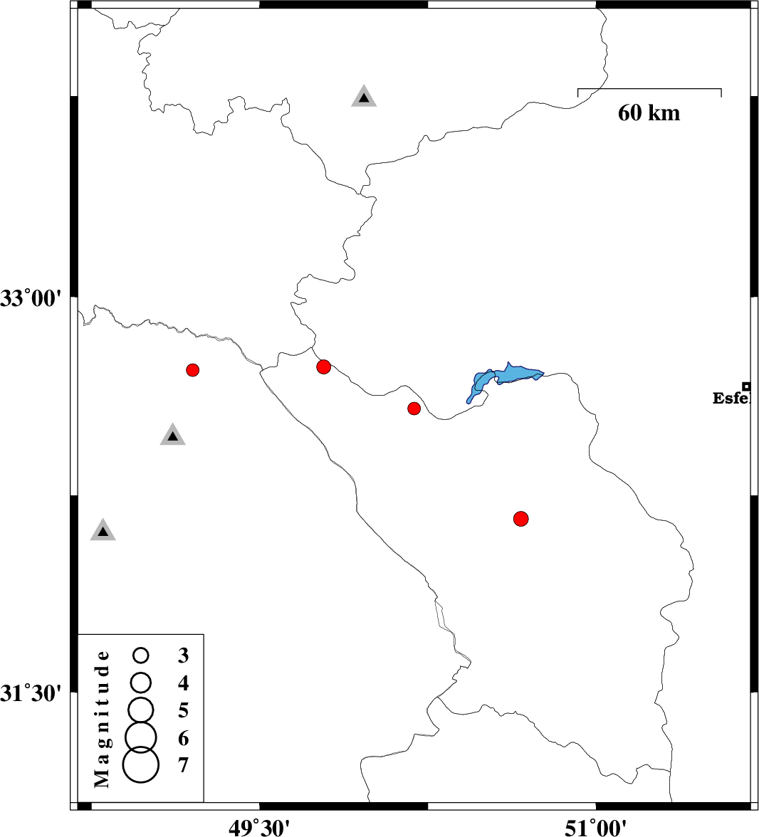 | 2018/06/27 | 19:38:44.3 | 00:08:44.3 | 32.736 | 49.785 | 15 | ML2.8 | Chaharmahal Bakhtiari Province, 38 km South-West of Fereydunshahr | ||