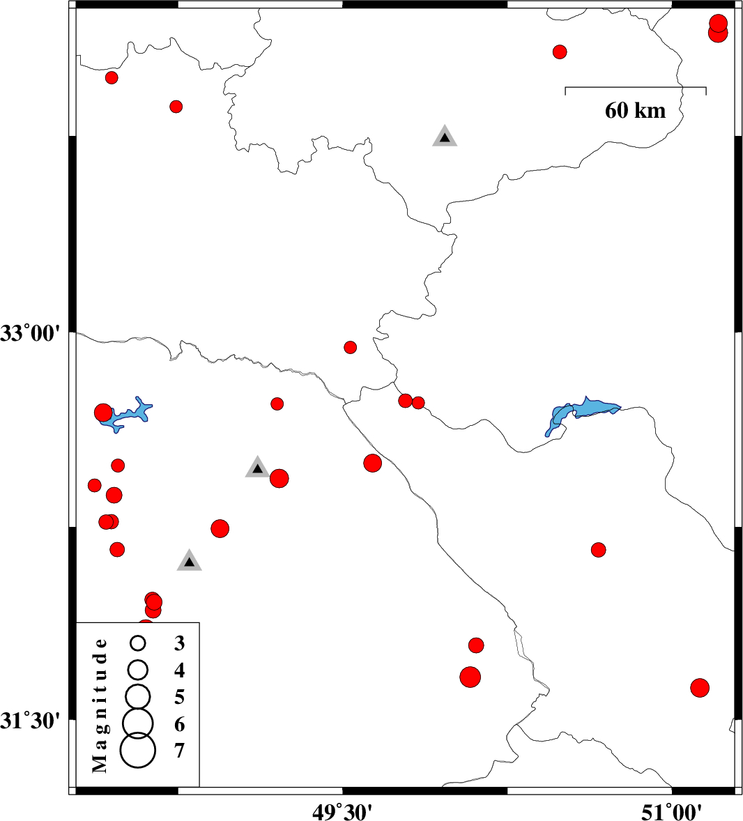 | 2018/05/29 | 04:39:03.1 | 09:09:03.1 | 31.853 | 48.603 | 15 | ML3.8 | Khoozestan Province, 32 km South-West of Shushtar | ||
