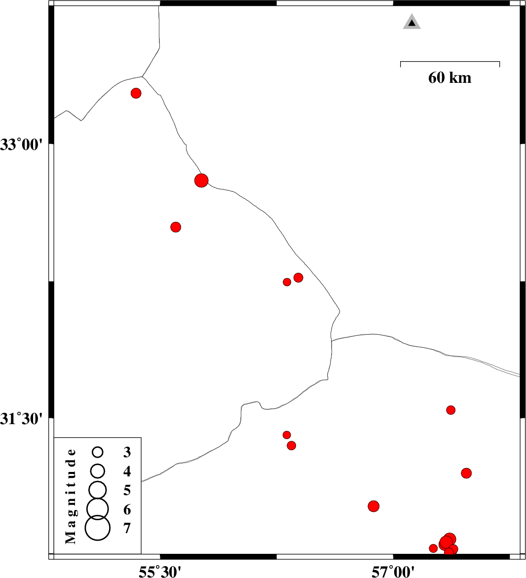 | 2018/06/23 | 00:23:00.2 | 04:53:00.2 | 30.748 | 57.371 | 14 | ML2.9 | Kerman Province, 58 km North-East of Kerman | ||