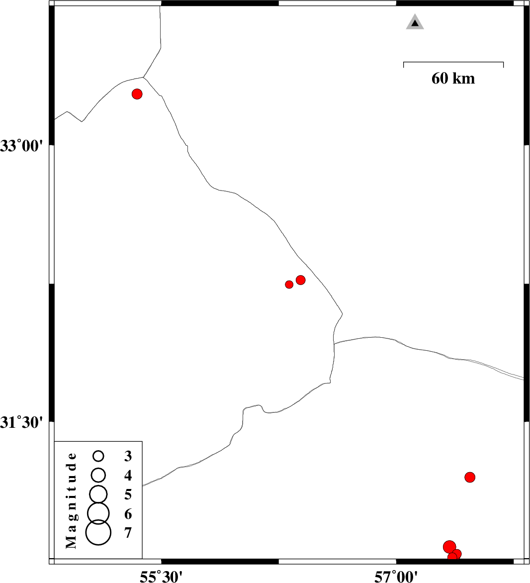 | 2018/06/23 | 00:23:00.2 | 04:53:00.2 | 30.748 | 57.371 | 14 | ML2.9 | Kerman Province, 58 km North-East of Kerman |