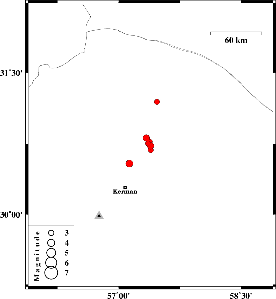 | 2018/06/28 | 19:52:40.4 | 00:22:40.4 | 30.685 | 57.395 | 14 | ML2.9 | Kerman Province, 54 km North-East of Kerman | ||