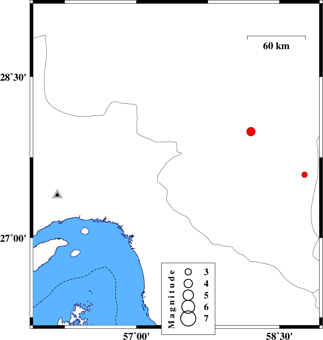 | 2018/07/06 | 20:04:48.0 | 00:34:48.0 | 27.676 | 57.418 | 18 | ML2.7 | Kerman Province, 31 km North of Manujan | ||