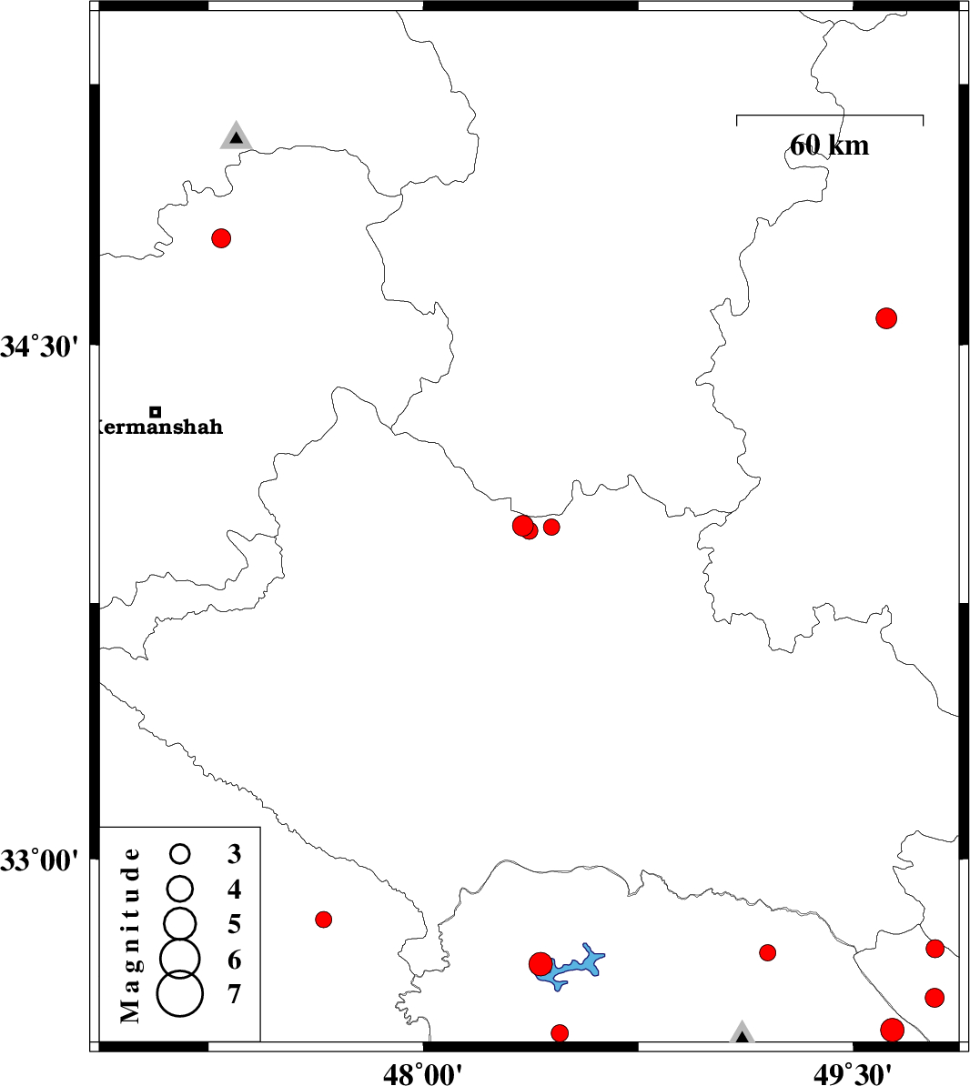 | 2018/07/07 | 03:38:54.2 | 08:08:54.2 | 33.976 | 48.347 | 14 | ML3.2 | Lorestan Province, 13 km North of Aleshtar | ||
