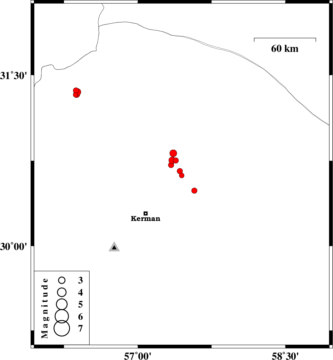 | 2018/07/03 | 07:30:46.2 | 12:00:46.2 | 30.755 | 57.349 | 17 | ML3.1 | Kerman Province, 58 km North-East of Kerman | ||