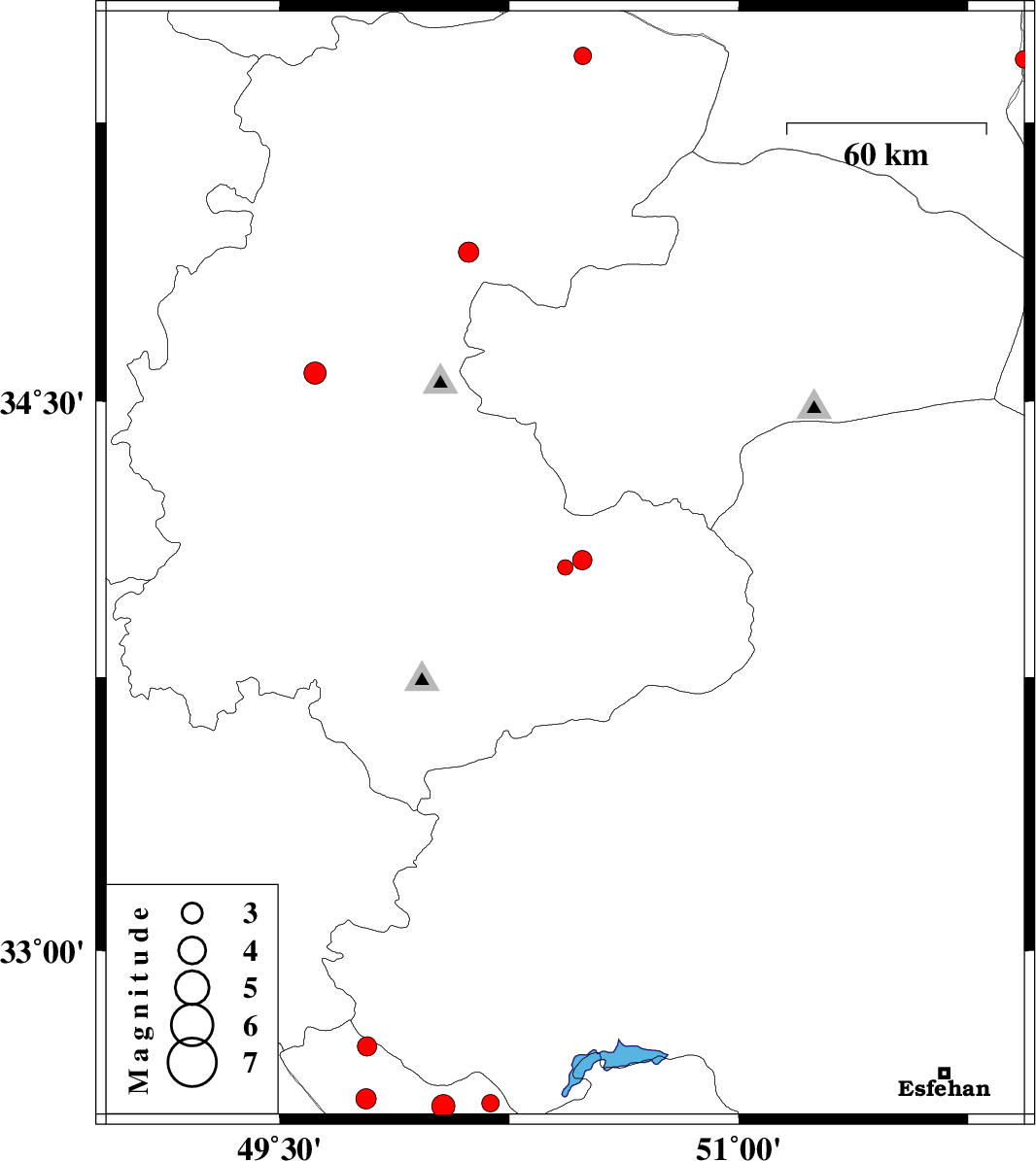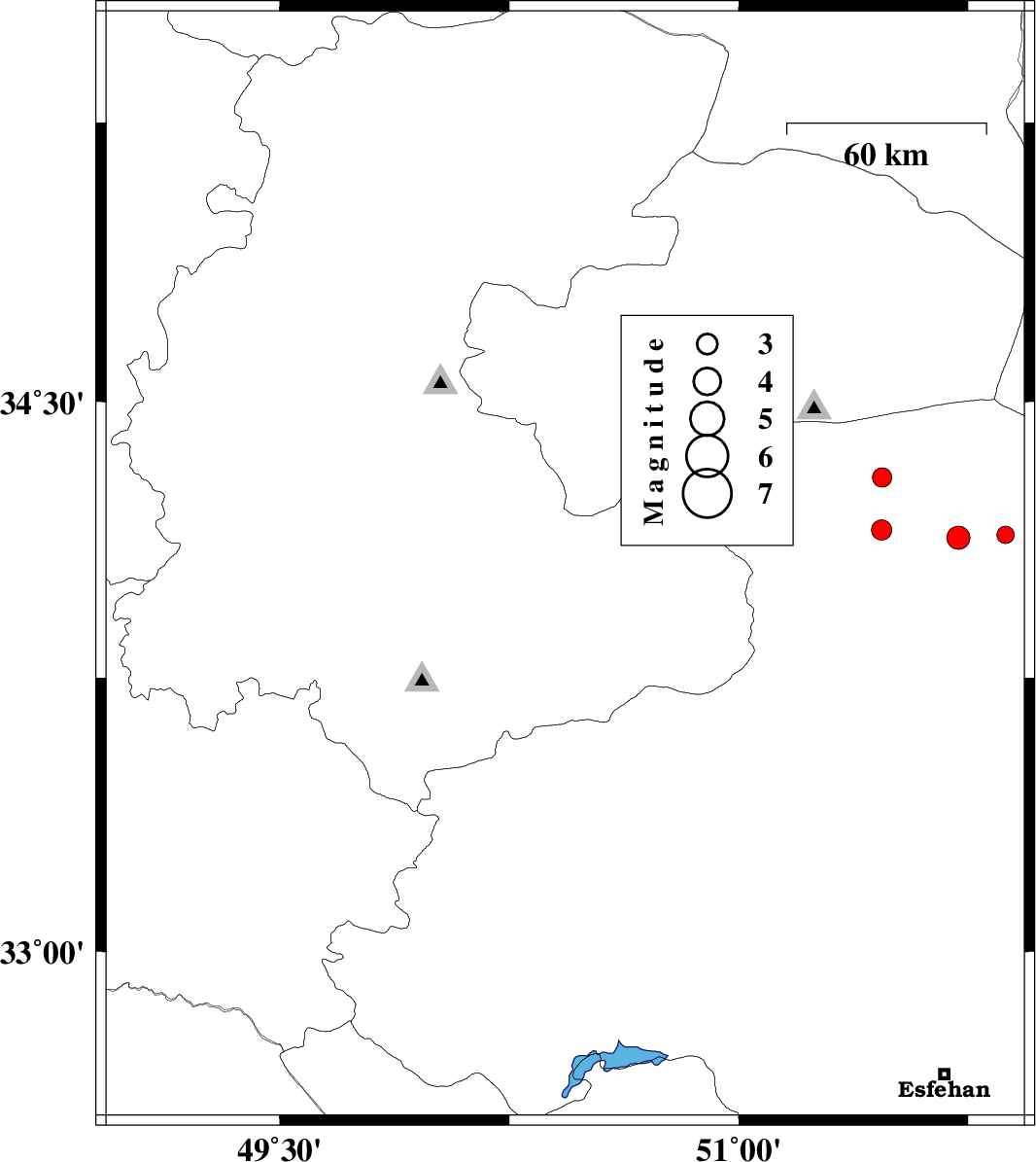 | 2018/06/27 | 19:38:44.3 | 00:08:44.3 | 32.736 | 49.785 | 15 | ML2.8 | Chaharmahal Bakhtiari Province, 38 km South-West of Fereydunshahr | ||