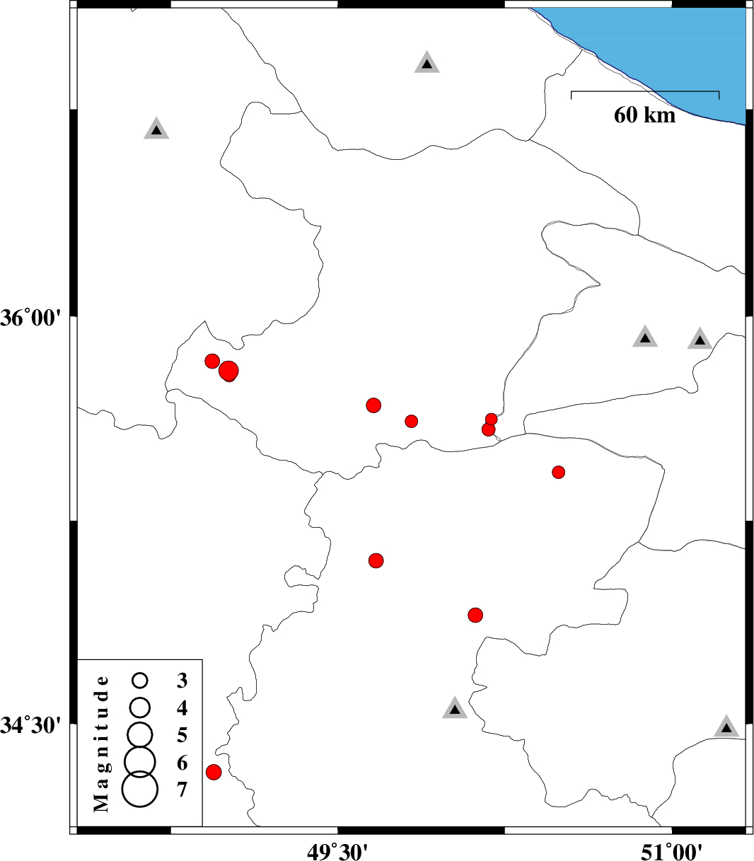 | 2018/06/10 | 06:41:34.9 | 11:11:34.9 | 35.8 | 49.01 | 15 | ML3.9 | Ghazvin Province, 46 km North of Razan | ||