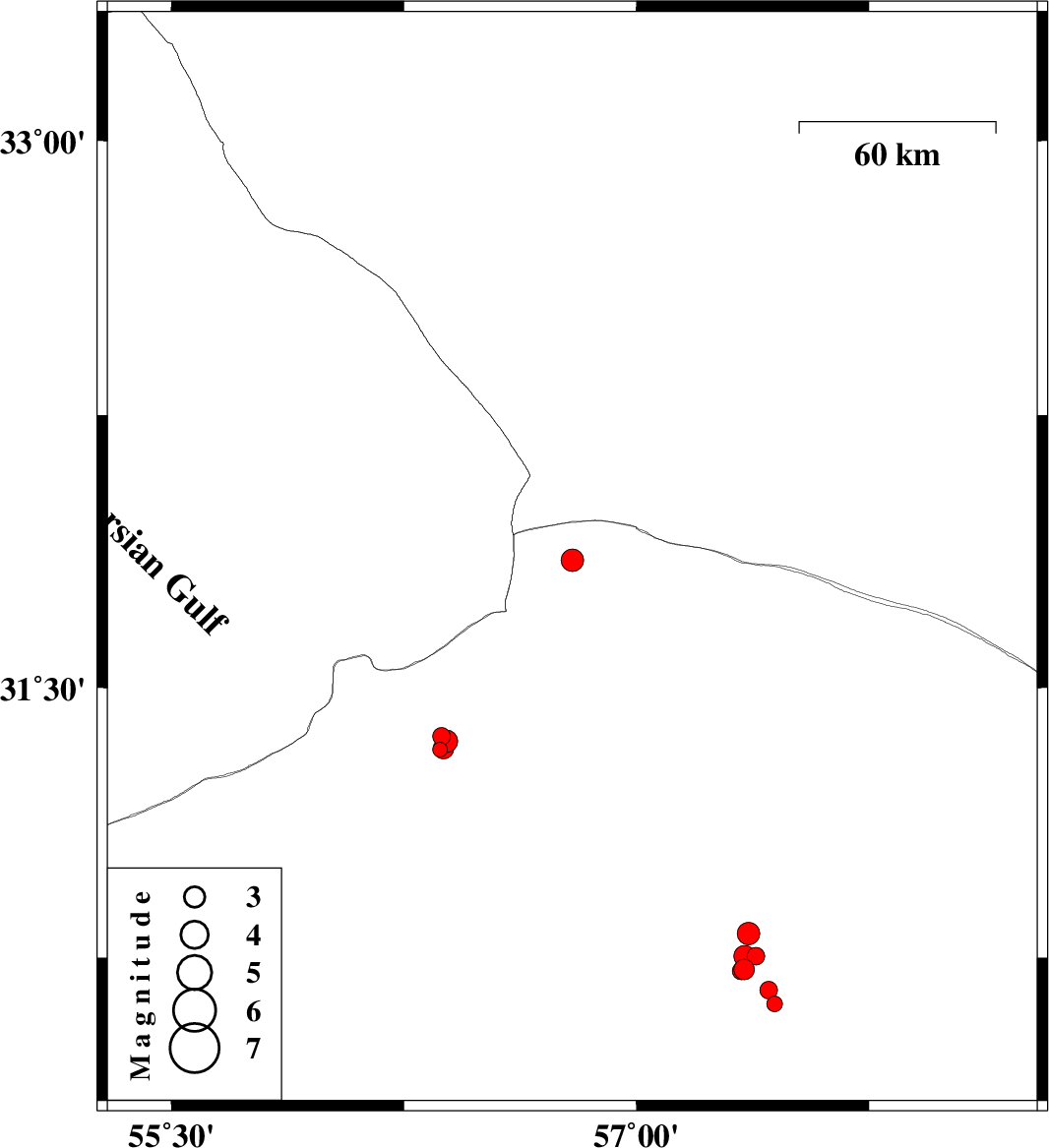 | 2018/07/03 | 07:30:46.2 | 12:00:46.2 | 30.755 | 57.349 | 17 | ML3.1 | Kerman Province, 58 km North-East of Kerman | ||