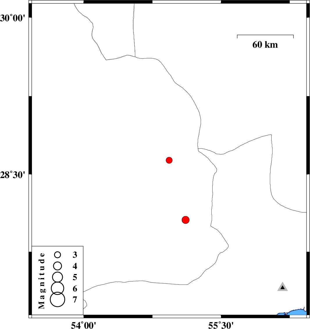 2018/07/11 | 02:30:26.7 | 07:00:26.7 | 28.635 | 54.933 | 14 | ML:3.1 | Fars Province, 41 km South-East of Darab | ||